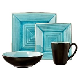 Zazen Square 16-pc. Dinnerware Set – Turquoise by Gibson